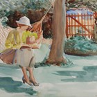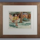 Harry Watson (British 1871-1936) - Garden scene with a lady reading in a hammock, watercolour, signed lower right, 24cm x 31cm, within a gilt composition frame.