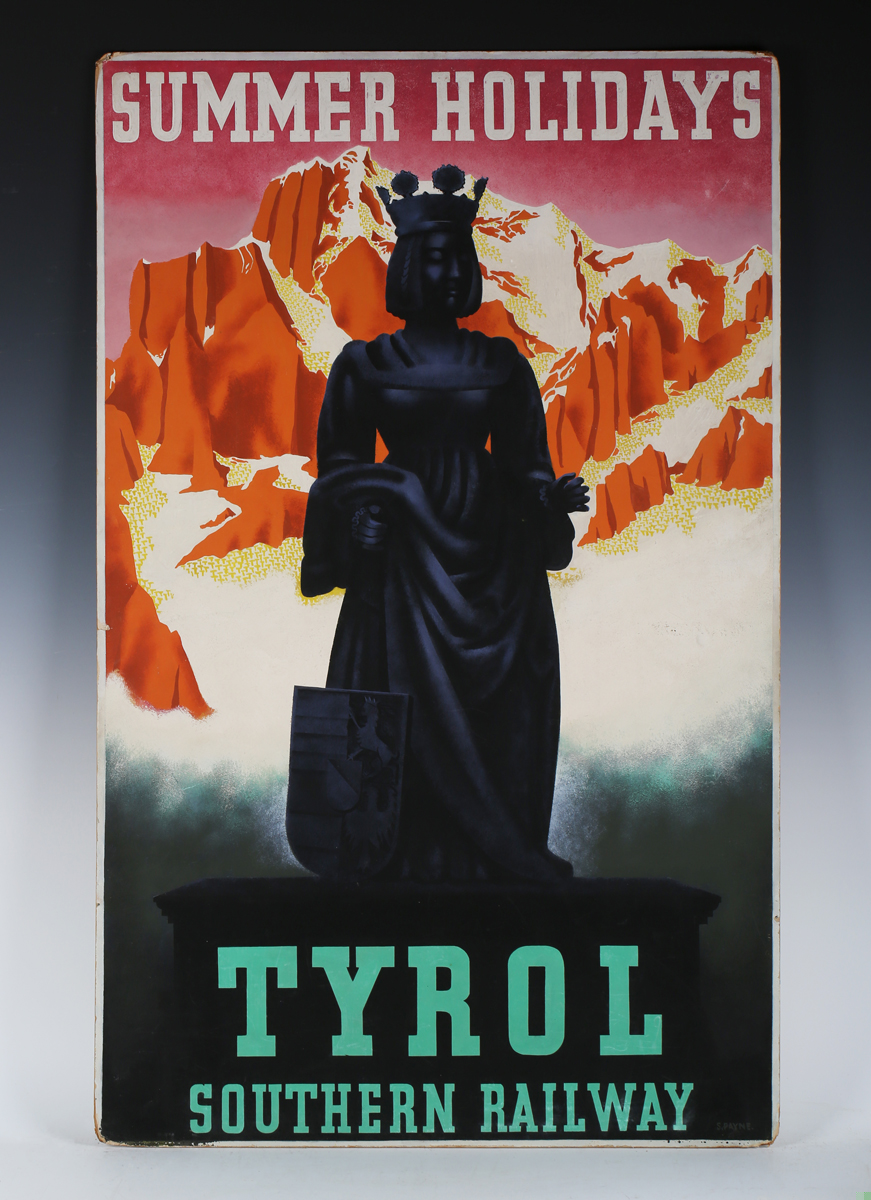 Stanley Payne (British early 20th century) - ‘Summer Holidays, Tyrol, Southern Railway', original artwork for an unpublished poster, gouache, signed and inscribed verso, 101.5cm x 64cm, unframed.