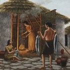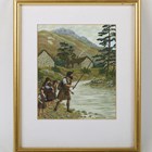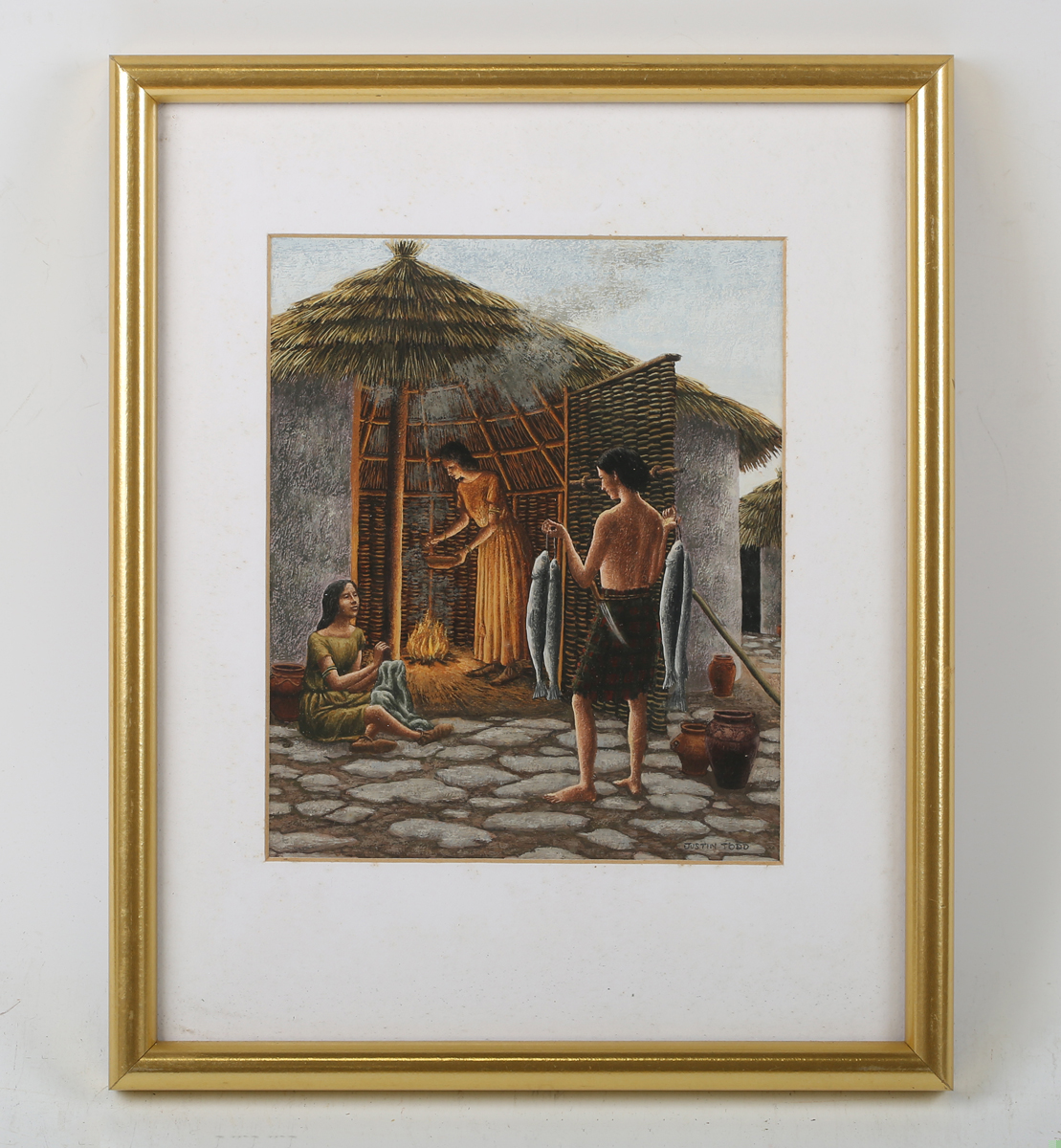 Justin Todd (British b.1932) - Iron Age dwellers; Viking boatbuilders; 18th century Highland fishing, a set of three, gouache, all signed lower right, each 16cm x 13cm, together with a holographic print, ‘A Christmas Carol’, after Fritz Wegner, all within gilt frames (4). Provenance: from the estate of the late Raymond Briggs, the world-renowned author and illustrator of The Snowman, Father Christmas and Fungus The Bogeyman.
