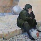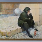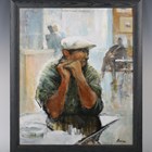 John Henson (British 1929-2015) - Man in a bar, oil on canvas-board; ‘Miles Away, Knights Hospital Alcove, Rhodes Old Town, Greece 1995’, oil on canvas, two, one signed lower right, the other lower left, the first 60m x 50cm, the second 50cm x 70cm, both framed (2).