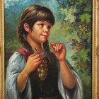 Giovanni Madonini (1915-1989) - Young girl picking grapes, oil on canvas, signed lower right, 49.5cm x 39.5cm, within a swept gilt composition frame.