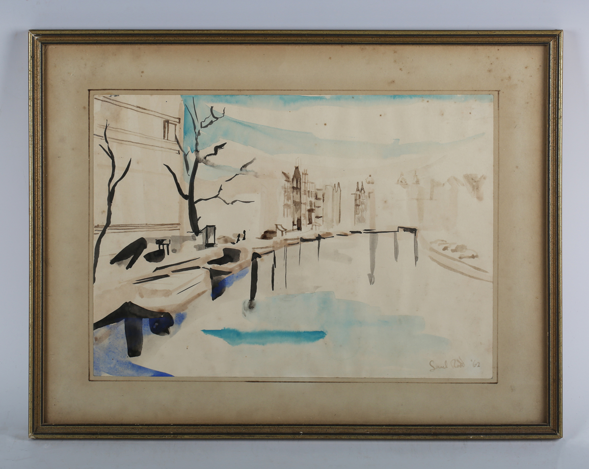 David Saul Rennell Rodd (British 1933-1966) - Landscapes, a group of six, watercolour, four signed lower right, the largest 25cm x 35cm, five within black frames, one in a gilt frame.