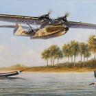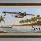 Bill Perring (British b.1951) - Catalina flying boat over a waterway, oil on canvas, signed and dated ’97 lower left, 30cm x 55cm, within a gilt and linen-lined frame.
