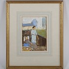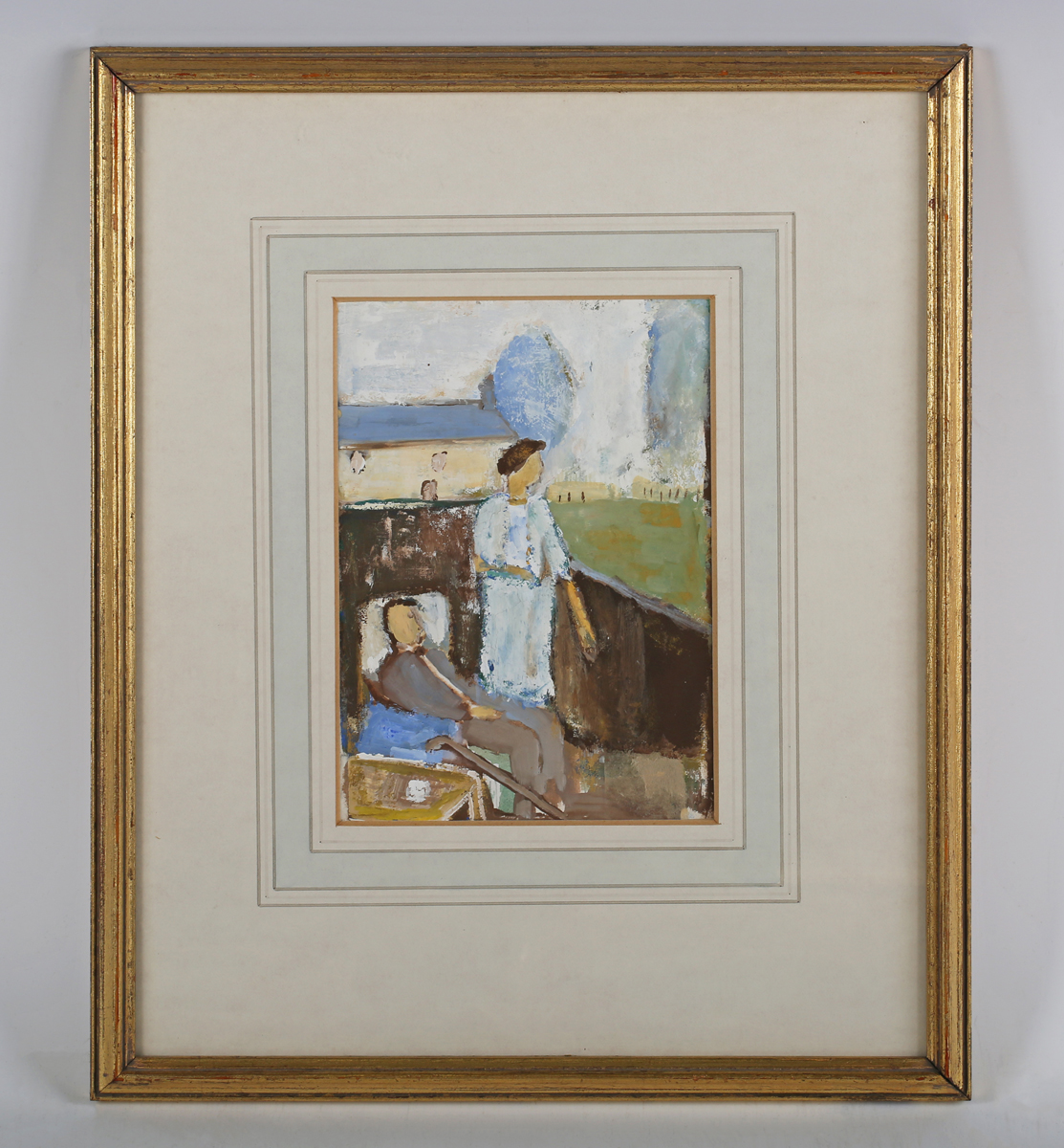 Alan Lambirth (British b.1959) - ‘Figures in a garden’, gouache, 18cm x 12.5cm, within a gilt frame.