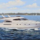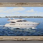 Edward Hersey (British b.1948) - Motor cruise boat off the coast, oil on canvas, signed lower right, 61cm x 91.5cm, within a swept painted composition frame.