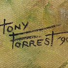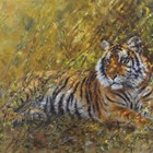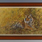 Tony Forrest (British b.1961) - ‘Tiger Majesty’, oil on canvas, signed and dated ’90 lower left, inscribed with title on overlap, 41cm x 76cm, within a stained wood frame.
