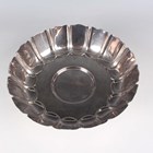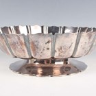 A George V silver circular footed strawberry dish with lobed sides and petal rim, raised on a circular petal rimmed foot, London 1932 by Goldsmiths & Silversmiths Co Ltd, weight 599g, diameter 20.7g, height 7cm.