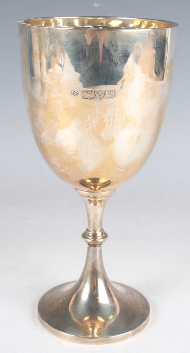 A George V silver goblet, the 'U' shaped body above a tapering knop stem and circular foot, Chester 1923 by Jones & Crompton, weight 280.6g, height 17.5cm.