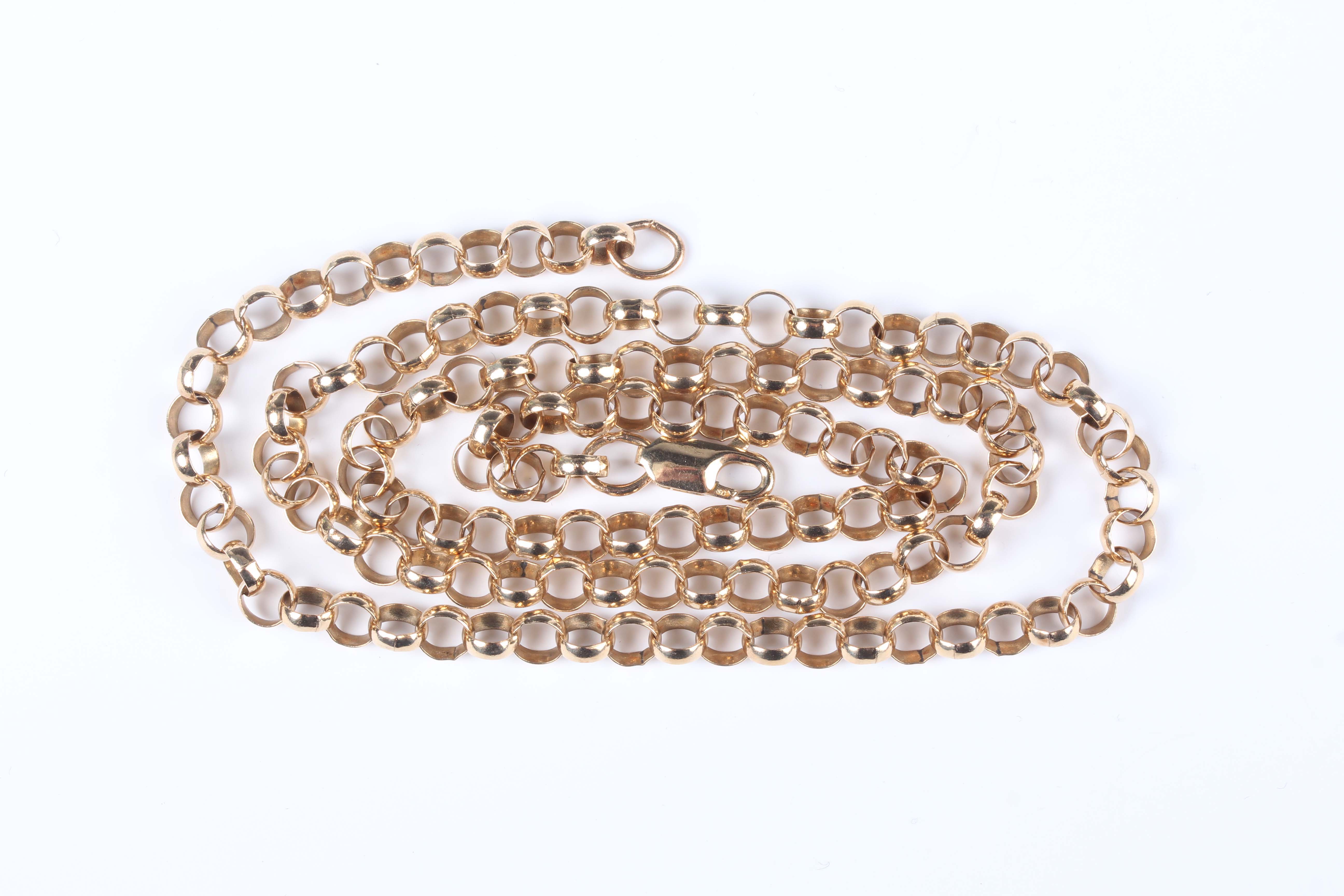 A 9ct gold circular link neckchain on a sprung hook shaped clasp, weight 13.4g, length 51.5cm.