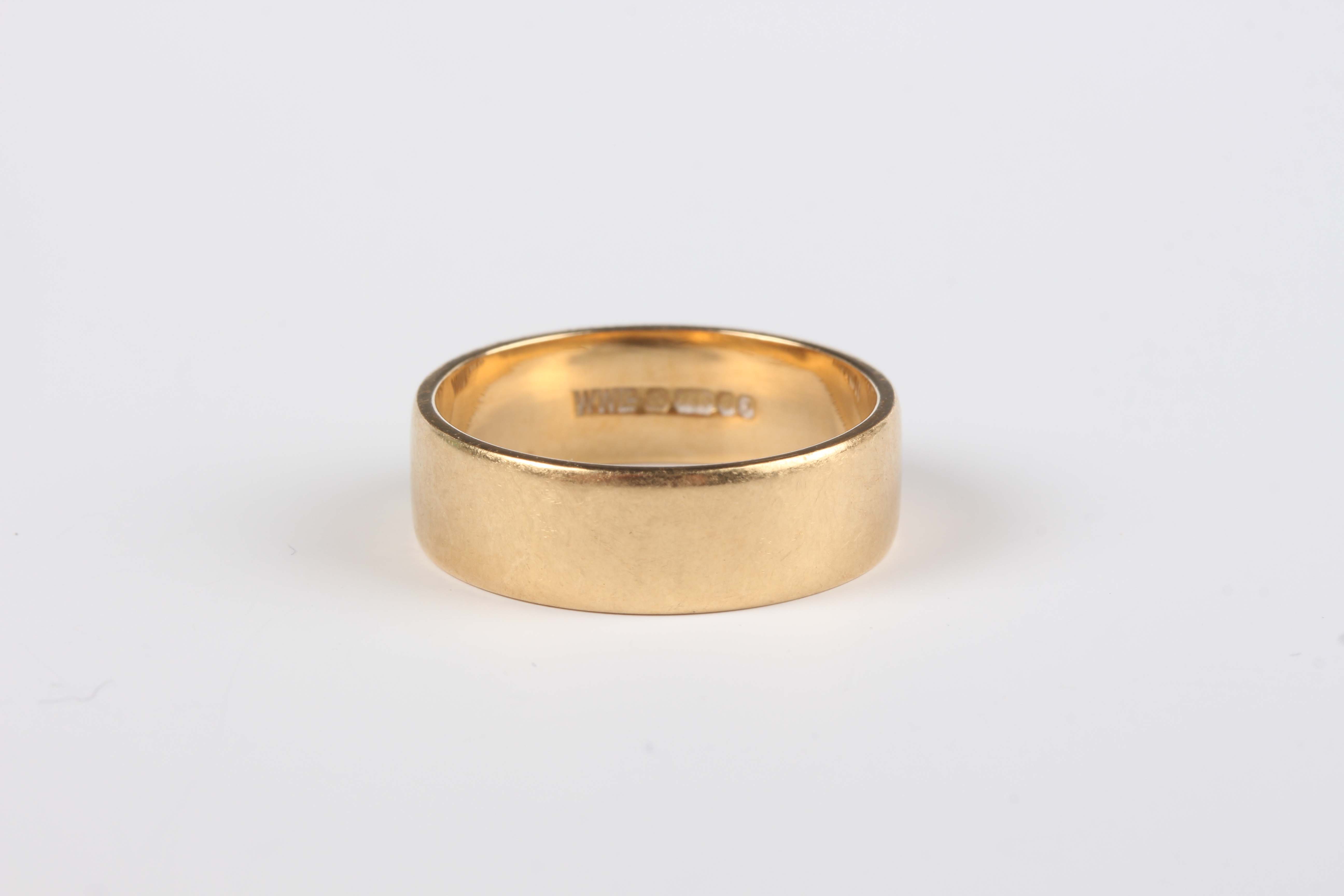 An 18ct gold wide band wedding ring, London 1980, weight 5.4g, ring size approx N.