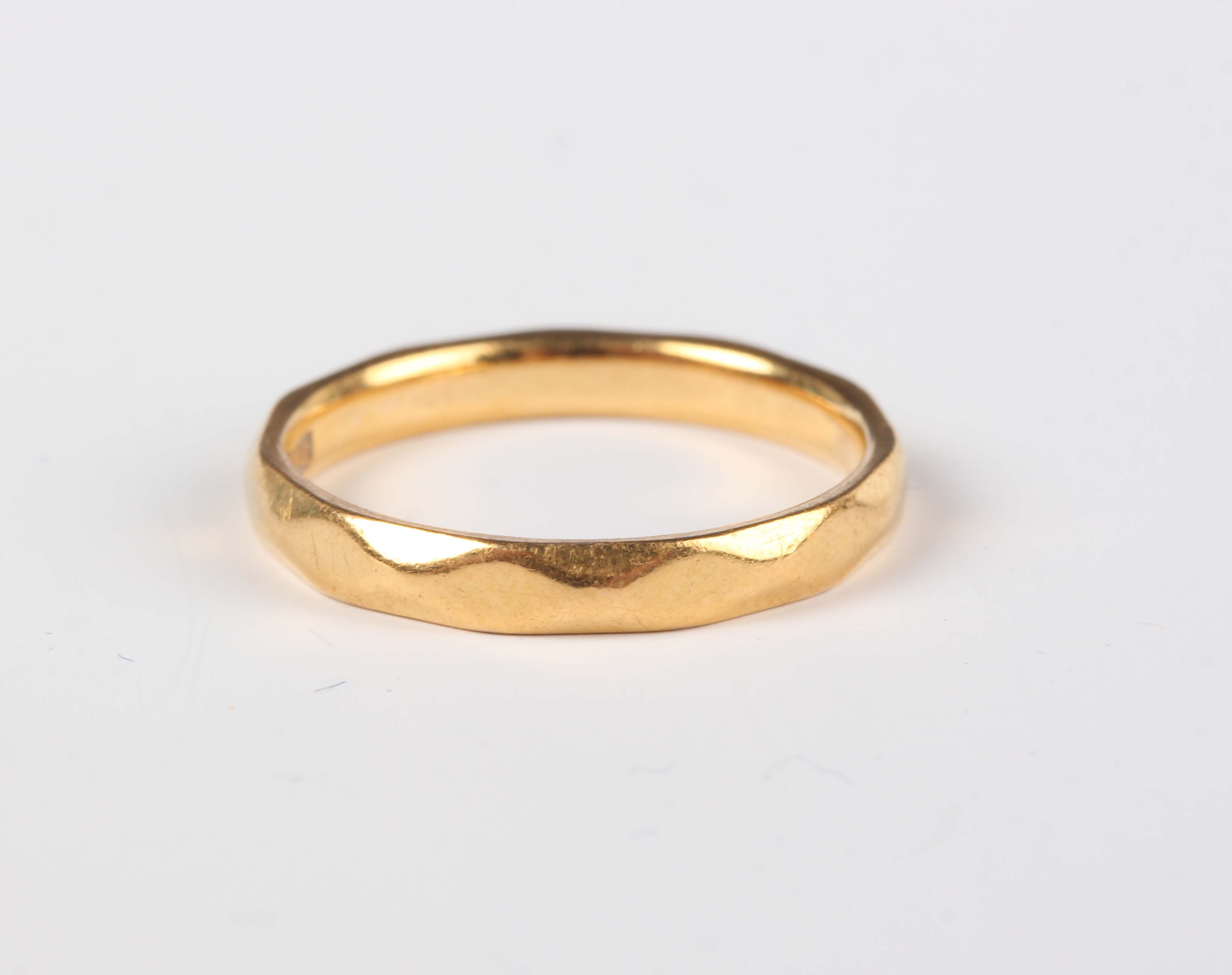 A 22ct gold wedding ring with faceted decoration, London 1961, weight 2.9g, ring size approx I1/2.