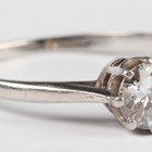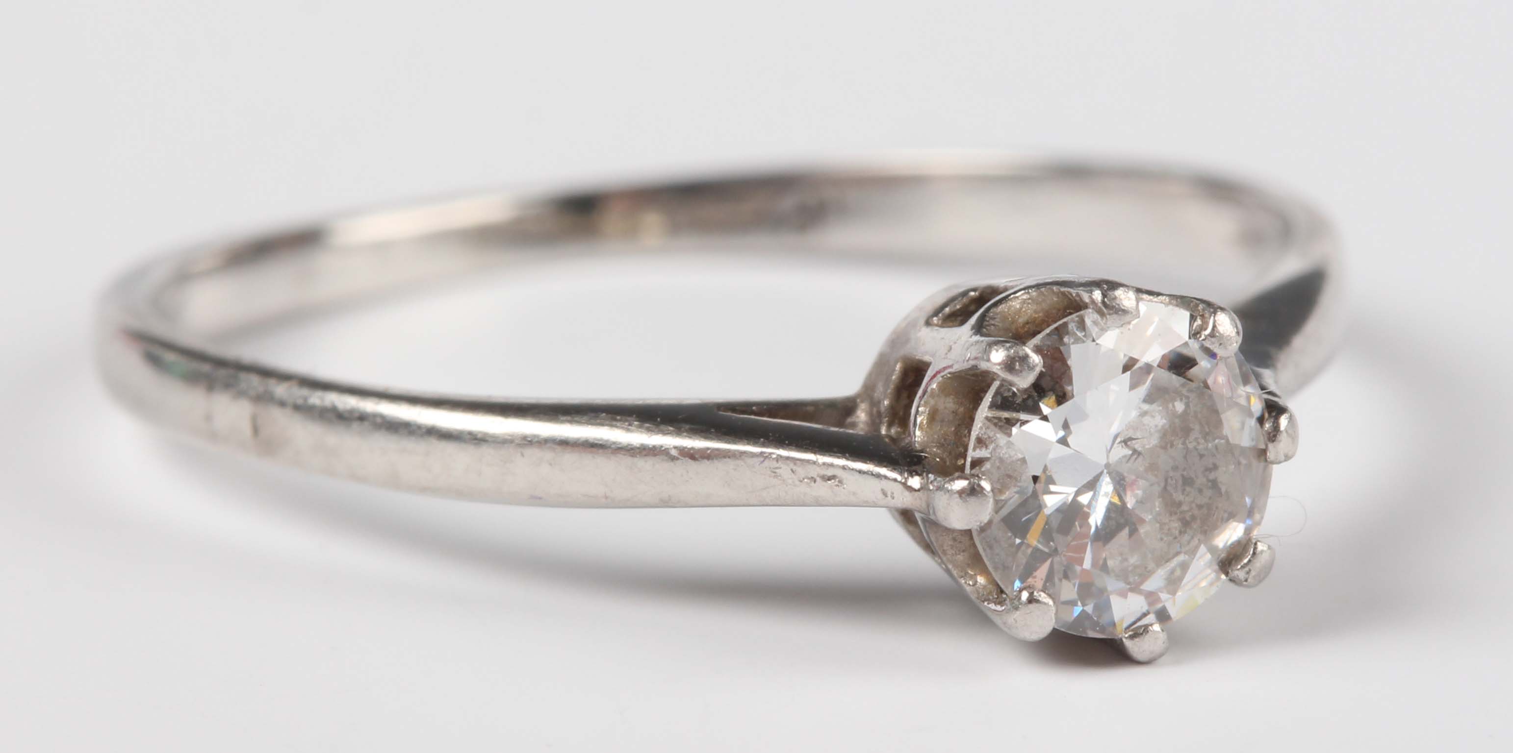 A platinum and diamond single stone ring, claw set with a circular cut diamond, detailed ‘P’, weight 2.1g, diamond weight approx 0.40ct, ring size approx M1/2.