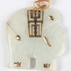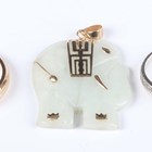 A 9ct white gold and diamond ring in a twist design, mounted with circular cut diamonds, ring size approx I1/2, a 9ct gold and diamond three stone ring, star set with circular cut diamonds, total weight 5.1g, and a gold mounted jade pendant, designed as an elephant, the suspension detailed ‘9K 375’.