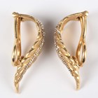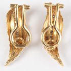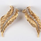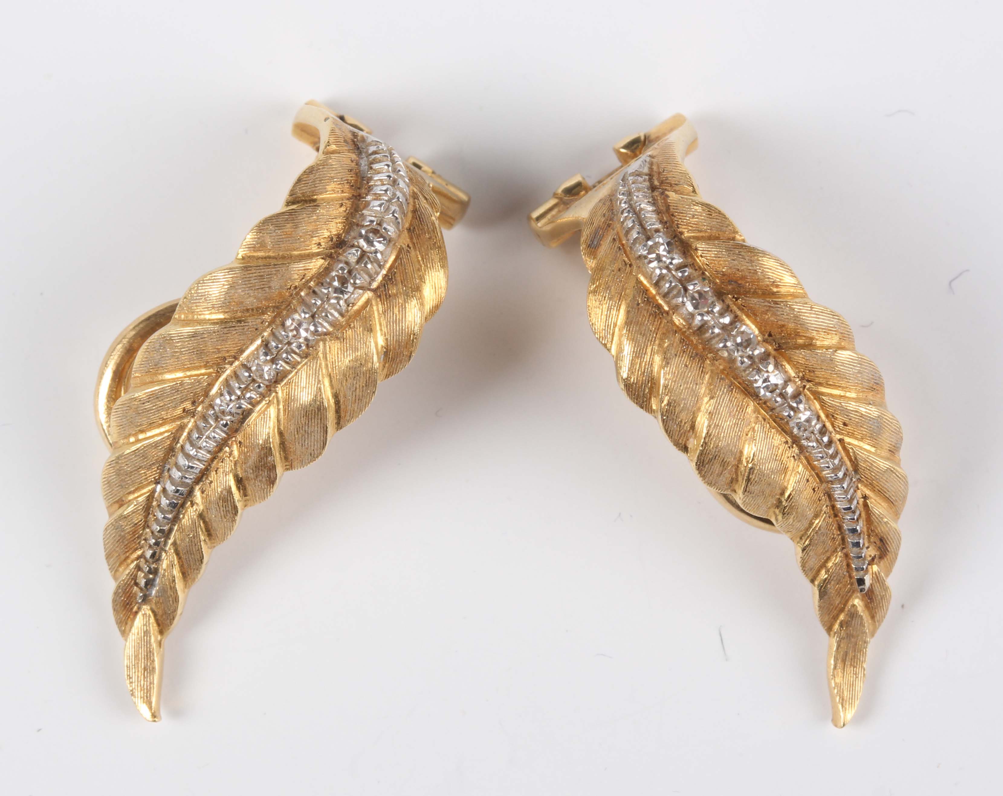 A pair of 18ct gold and diamond earclips of leaf form, import mark London 1970, weight 7g, length 2.7cm.