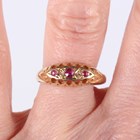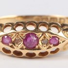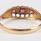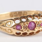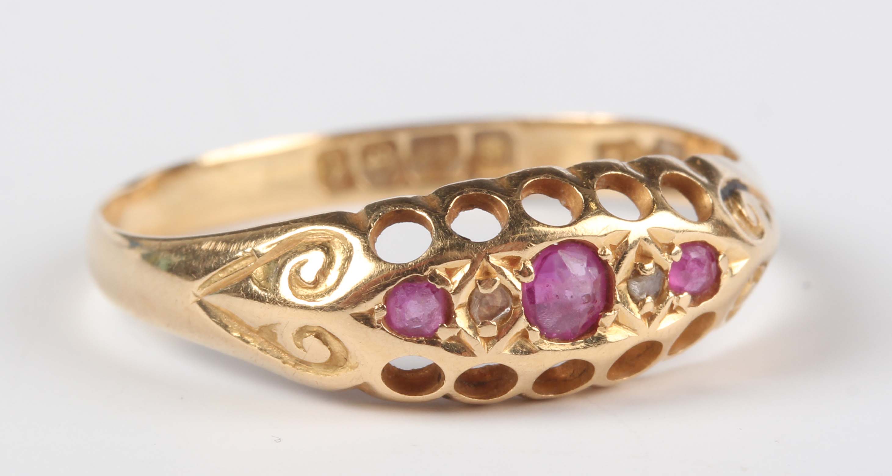 An 18ct gold ring, mounted with three rubies alternating with two diamonds, Birmingham 1918, weight 1.8g, ring size approx S.