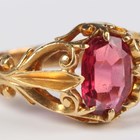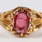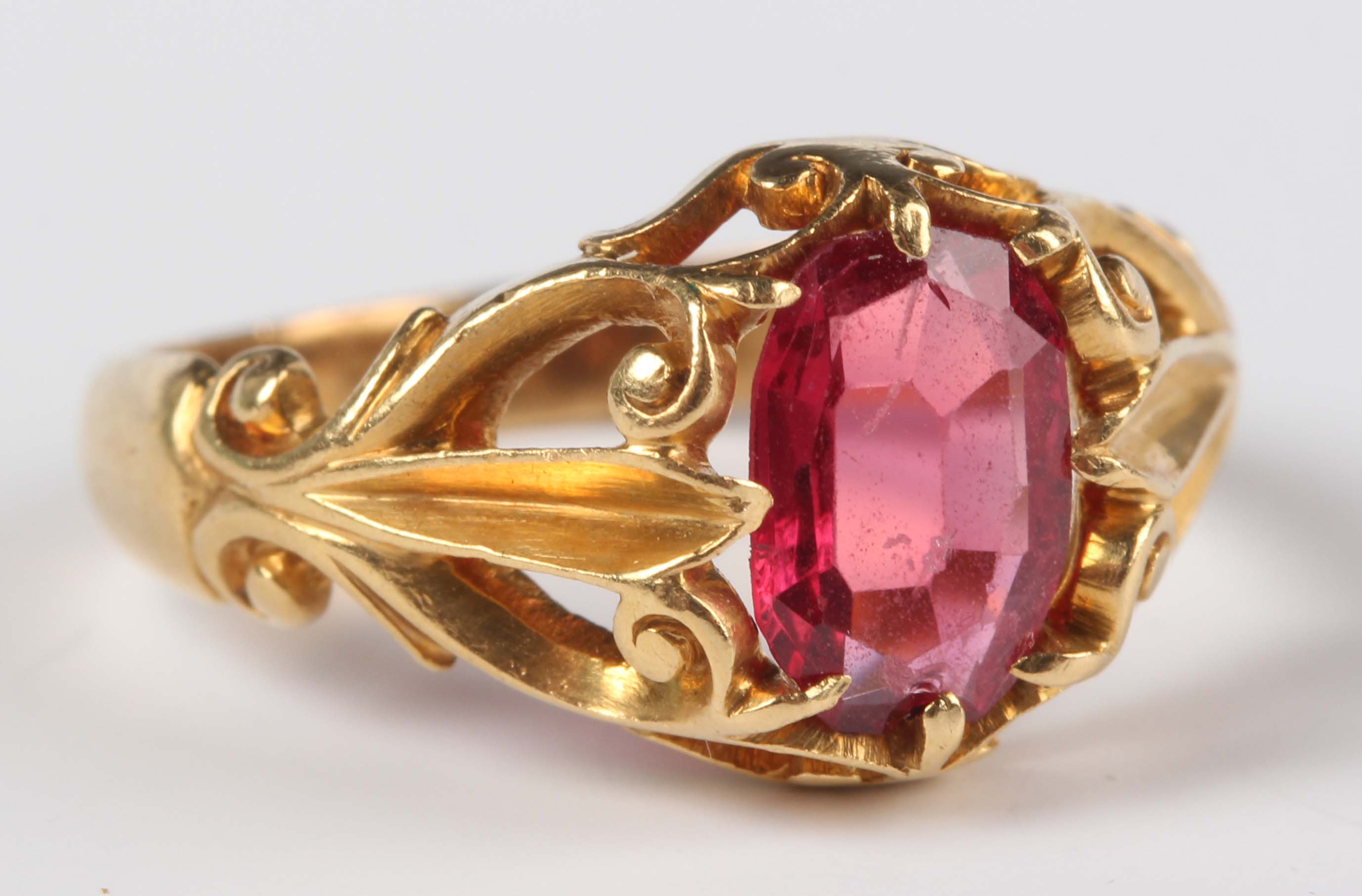 A gold and pink spinel single stone ring, unmarked, weight 3.1g, ring size approx G.