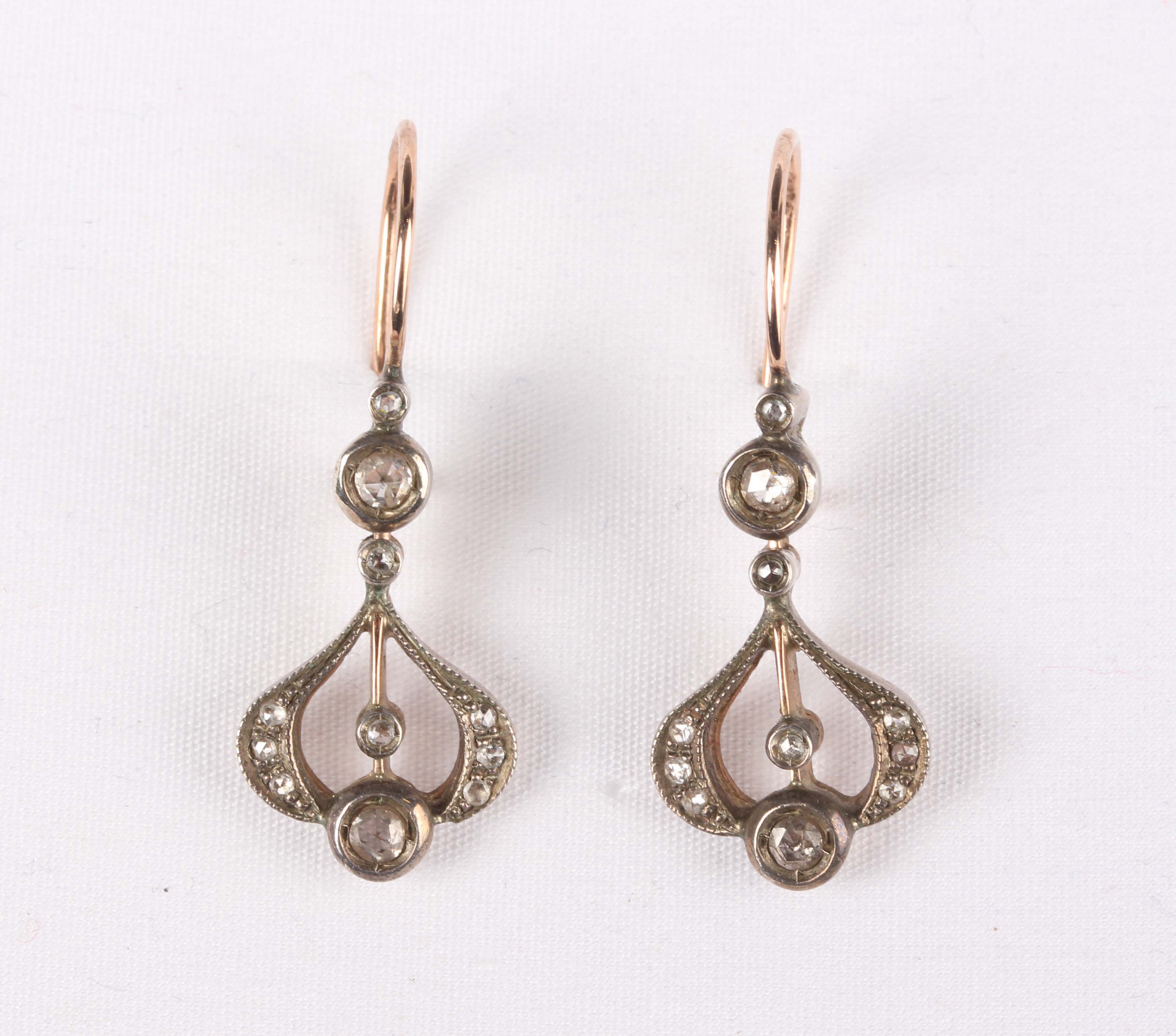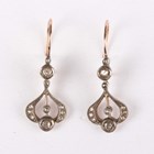 A pair of gold, silver set and diamond earrings in a scroll pierced openwork design, detailed ‘375’, weight 4.7g, length 3.4cm, with an associated case.