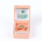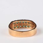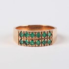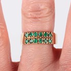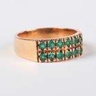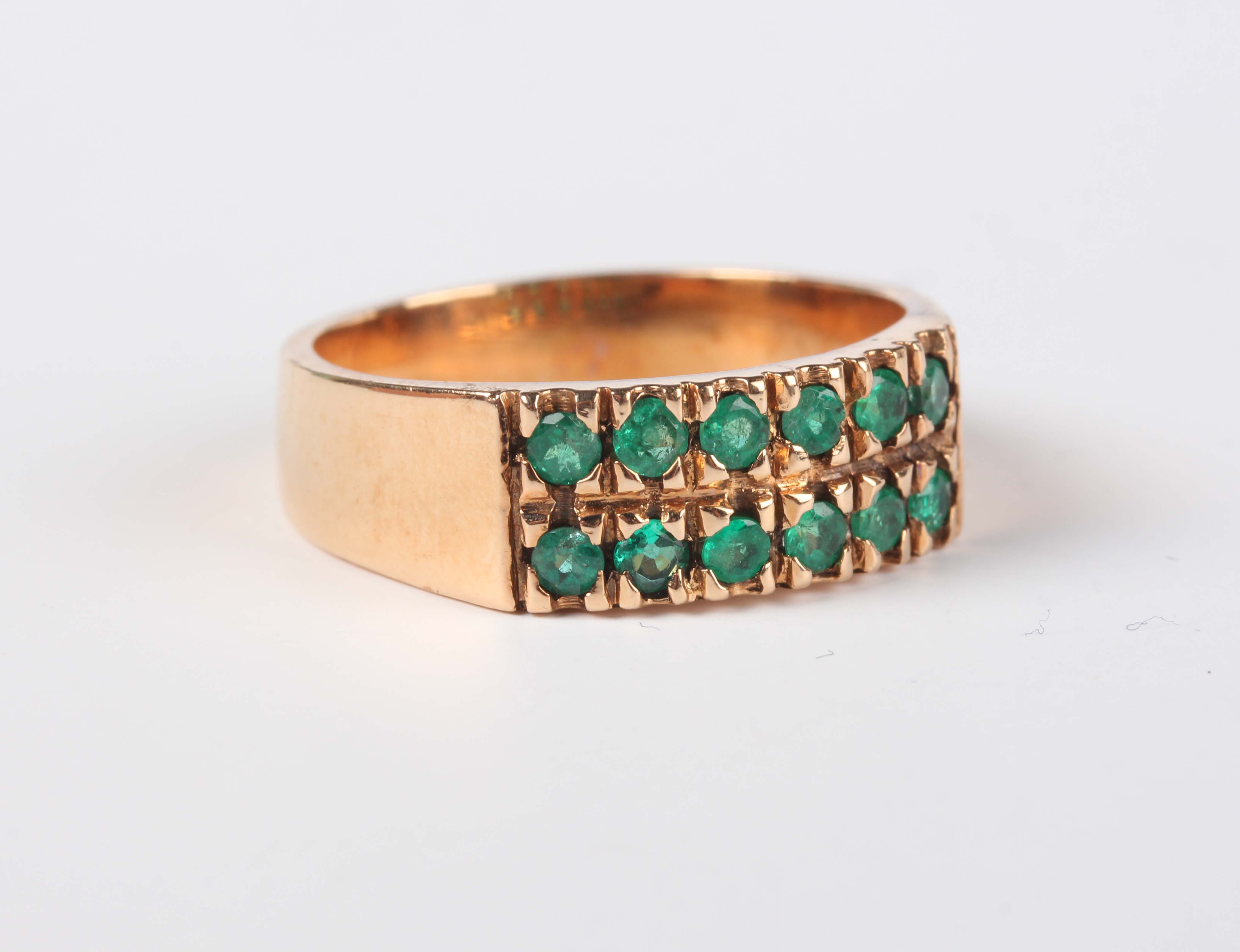 A gold ring, mounted with two rows of six circular cut emeralds, detailed ‘18K’, weight 5.4g, ring size approx O1/2, with a case.