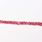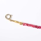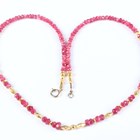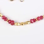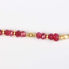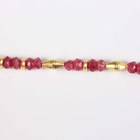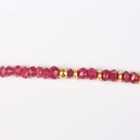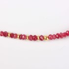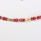A gold and treated ruby faceted bead necklace, spaced with gold spherical and shaped links at intervals, on a boltring clasp, detailed ‘925’, length 50.5cm.