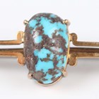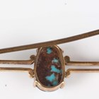A 9ct gold bar brooch, claw set with a central oval turquoise matrix, detailed '9ct', weight 2.6g, length 5.3cm.