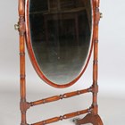 A 19th century mahogany framed oval cheval mirror of small proportions, raised on sabre legs and castors, height 139cm, width 65cm.