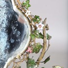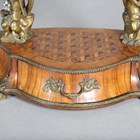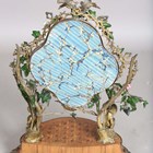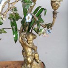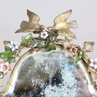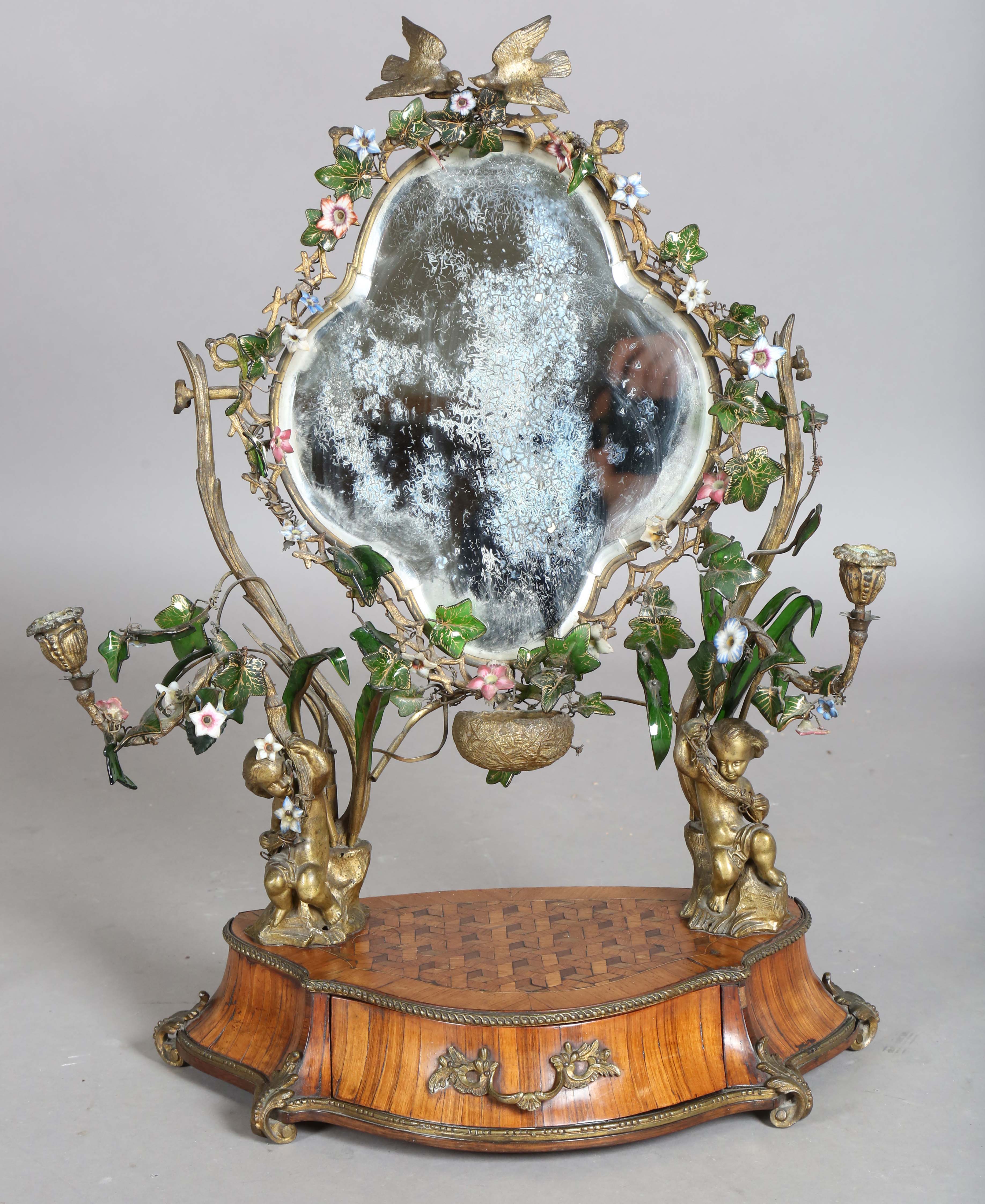 A 19th century French kingwood and gilt metal mounted dressing table mirror, the naturalistic frame with a pair of candle holders supported by putti, embellished with glass ivy leaves and flowerheads, the shaped base fitted with a drawer, height 64cm, width 45cm, depth 24cm.