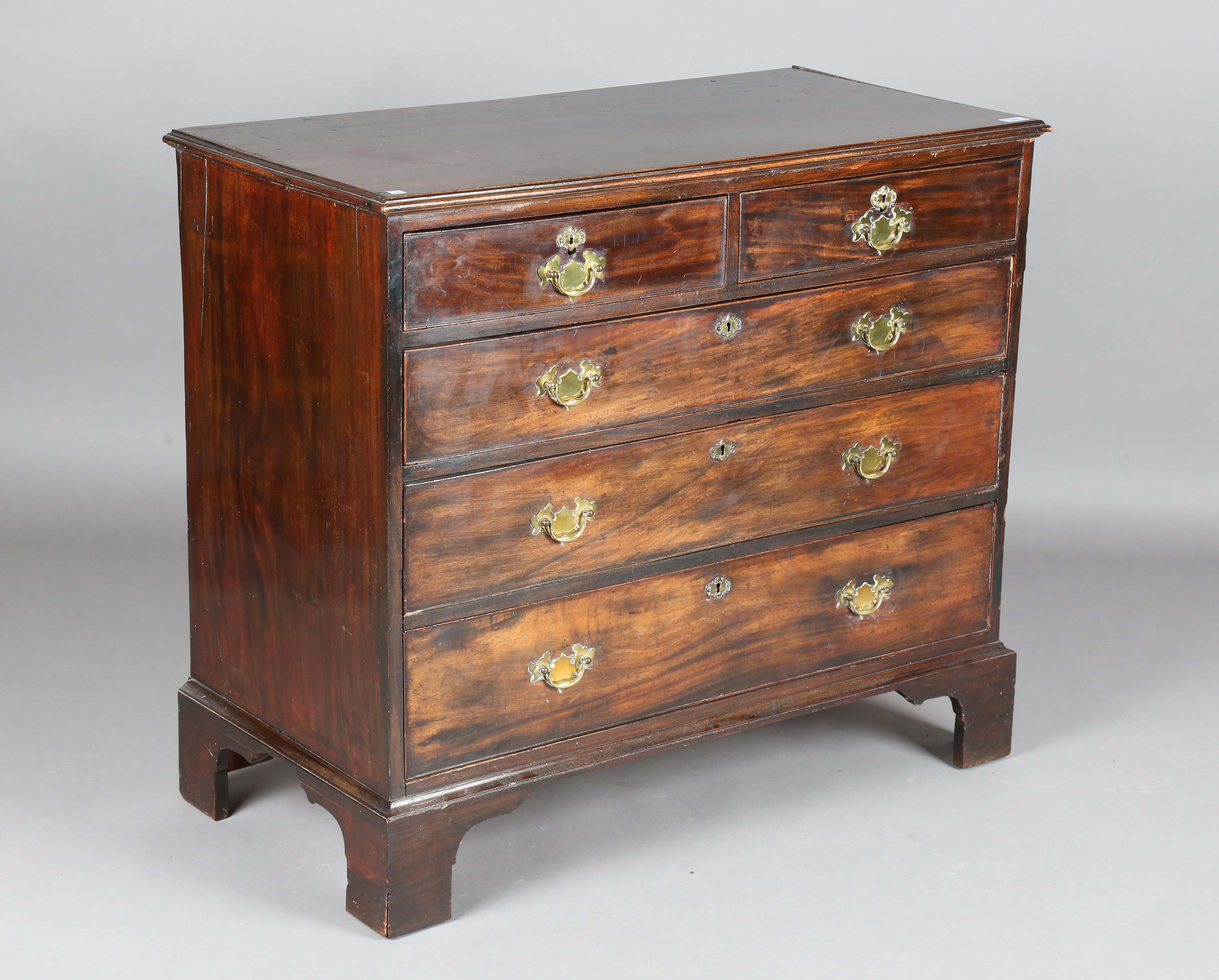 A late George III mahogany chest of two short and three graduated long drawers, on bracket feet, height 91cm, width 104cm, depth 51cm.