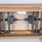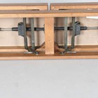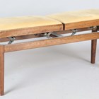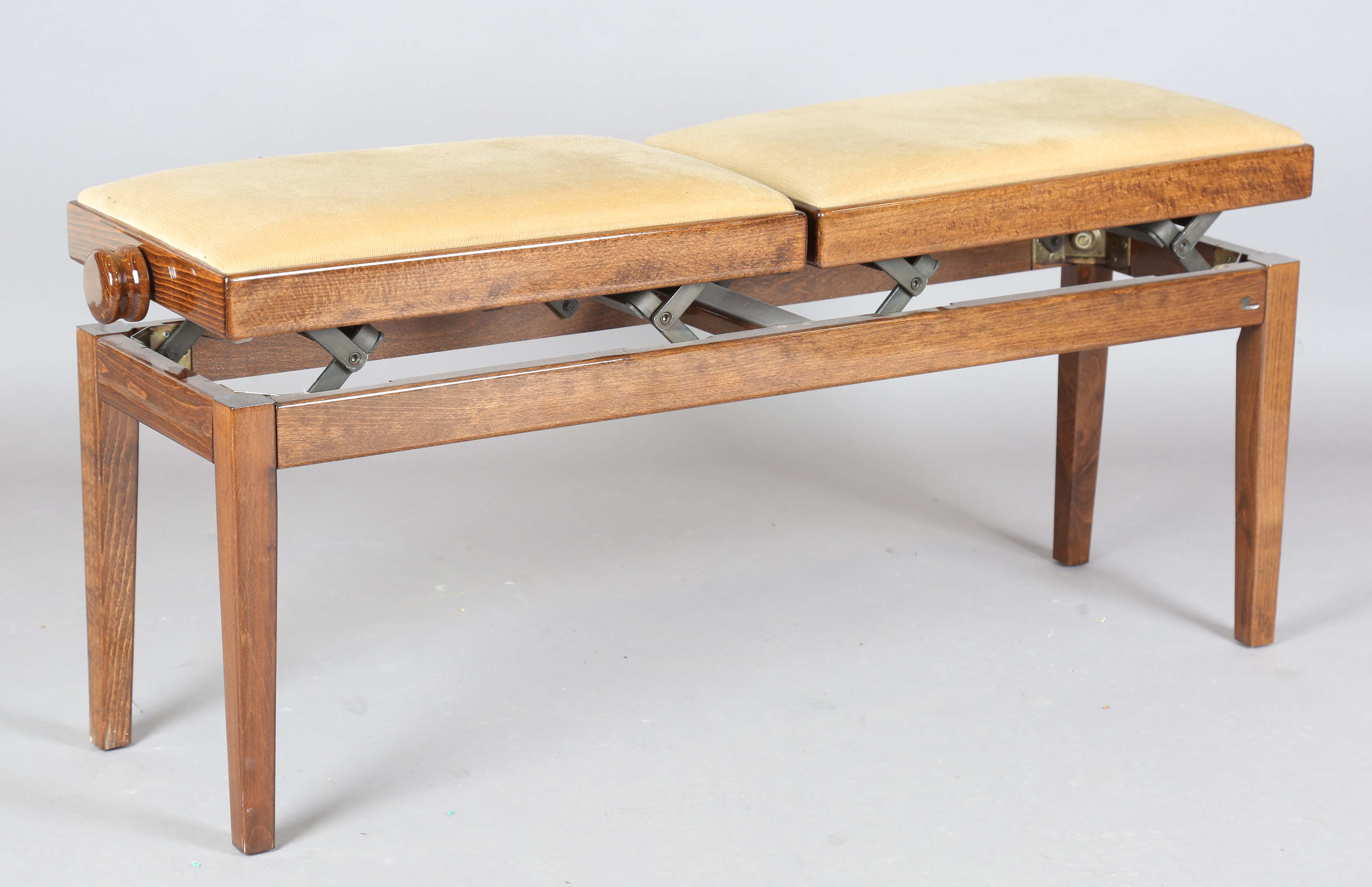 A modern beech framed adjustable duet piano stool, height 50cm, width 119cm, depth 33cm.