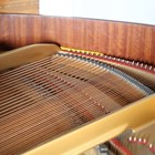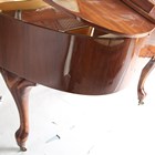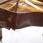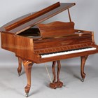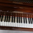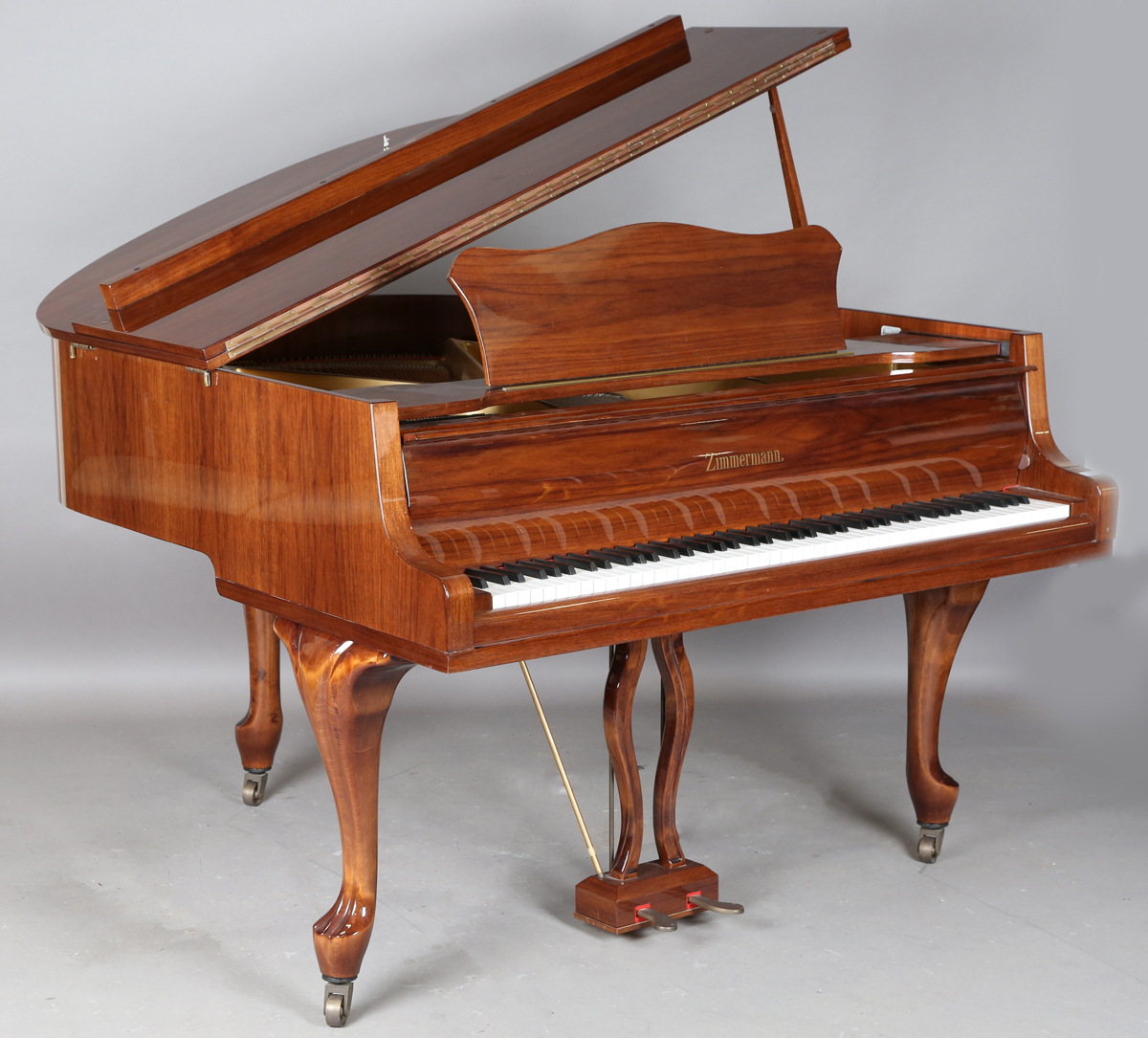 A late 20th century walnut cased baby grand piano by Zimmermann, overstrung, serial number '408032', raised on carved cabriole legs, height 102cm, width 145cm, depth 143cm.