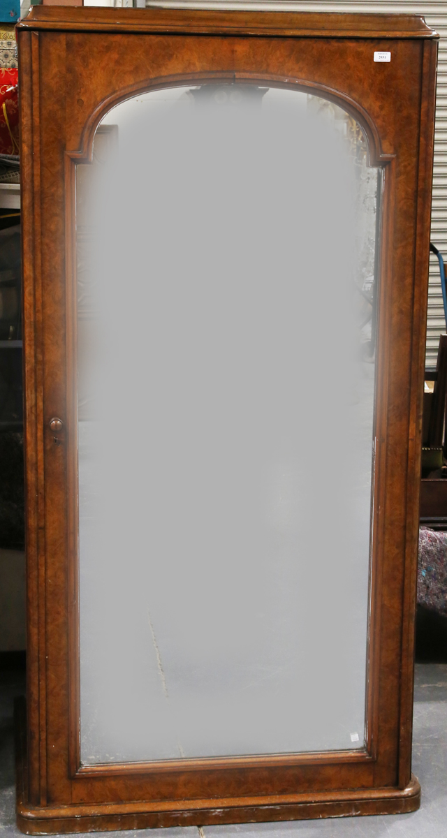 A Victorian burr walnut wardrobe, fitted with a single mirrored door, height 192cm, width 100cm, depth 67cm (altered).