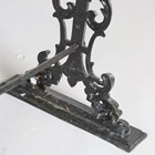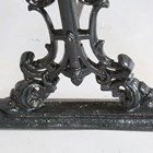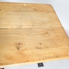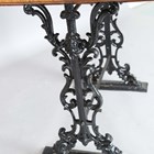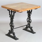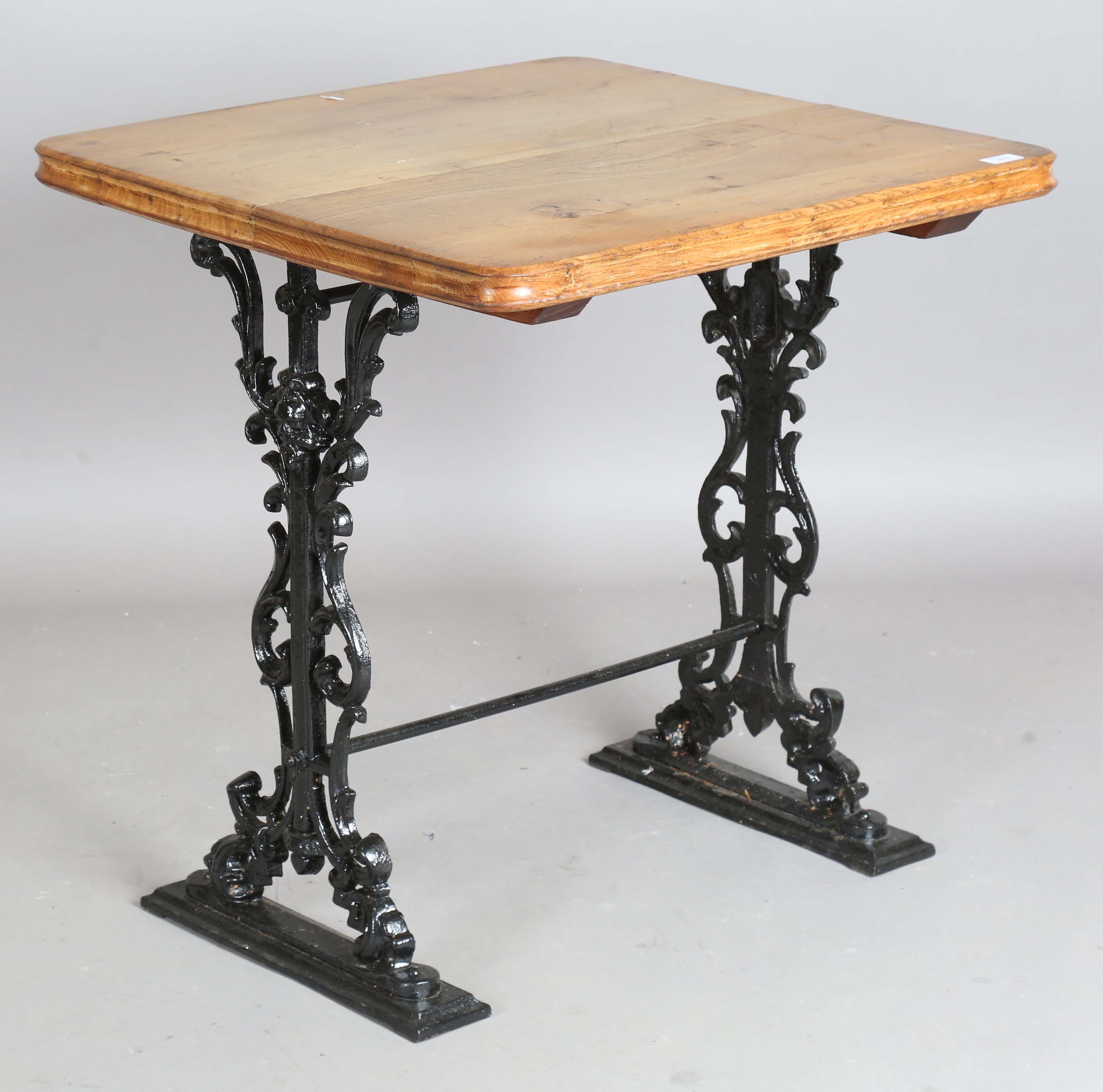 A 19th century black painted cast iron table base with a later solid chestnut top, height 73cm, width 69cm, depth 69cm.