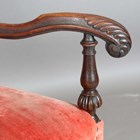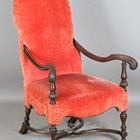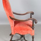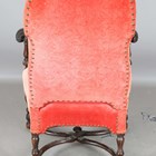 A late 19th/early 20th century Carolean Revival mahogany framed elbow chair, upholstered in pink velour, height 117cm, width 76cm, depth 78cm.