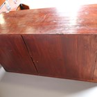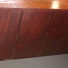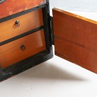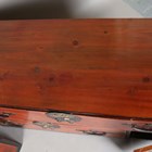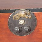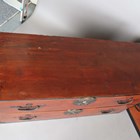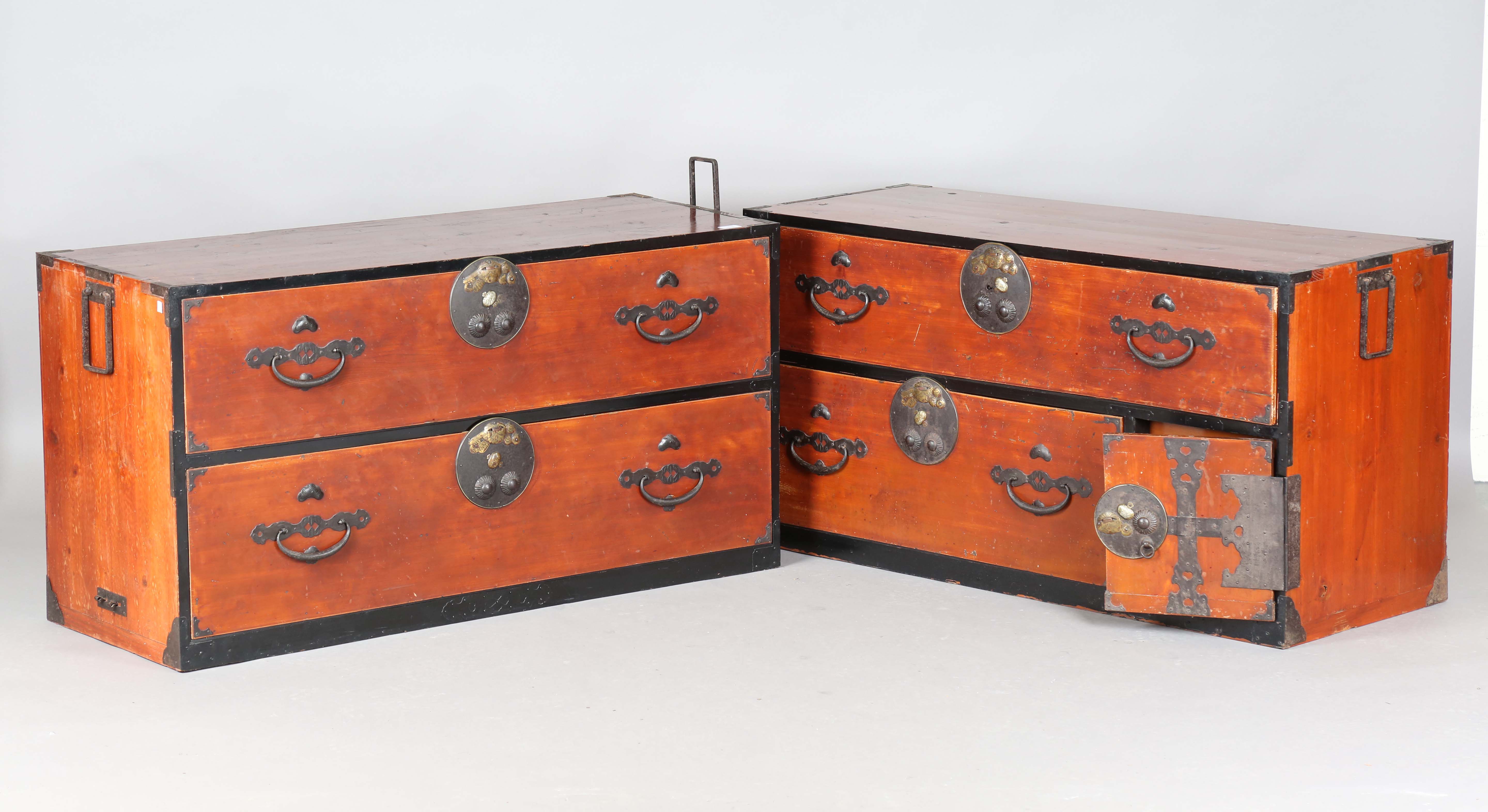 A Japanese stained pine two-section tansu, Edo period, the four drawers with circular lock plates and iron swing handles, height 120cm, width 115cm, depth 45cm.