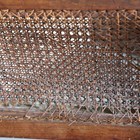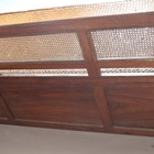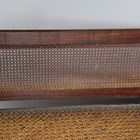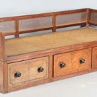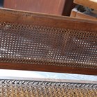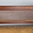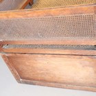 A Regency hardwood daybed, probably colonial, the low caned back and seat above three brass inlaid drawers, height 68cm, width 189cm, depth 76cm (lacking legs).