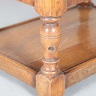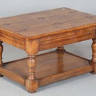 A late 20th century solid pollard oak coffee table, raised on turned legs united by an undertier, height 48cm, width 91cm, depth 61cm.