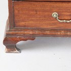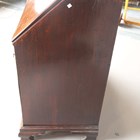 A George III mahogany bureau, the fall flap above an arrangement of oak-lined drawers, on ogee bracket feet, height 111cm, width 130cm, depth 59cm.