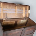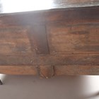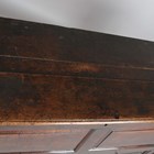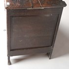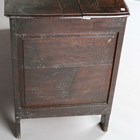 A Queen Anne oak mule chest with hinged top and two drawers, on stile supports, height 77cm, width 125cm, depth 54cm (faults).