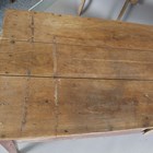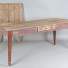 A 19th century painted and stripped pine farmhouse table, fitted with a single end leaf and drawer, height 74cm, width 195cm, depth 77cm.