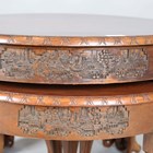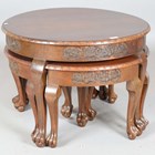 An early/mid-20th century Chinese teak nest of five interfitting tables, height 51cm, diameter 71cm.
