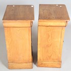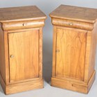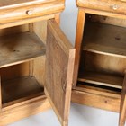 A pair of 19th century French provincial elm bedside cabinets, each fitted with a single frieze drawer above a cupboard, height 68cm, width 39cm, depth 31cm.