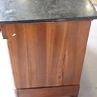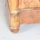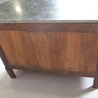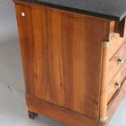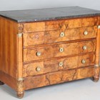A French Empire style walnut four-drawer commode with black veined marble top and gilt metal mounts, height 99cm, width 129cm, depth 64cm.