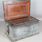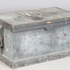 A late 19th/early 20th century grey painted pine seaman's tool chest, the interior fitted with lidded sliding compartments, height 51cm, width 103cm, depth 60cm.