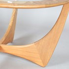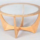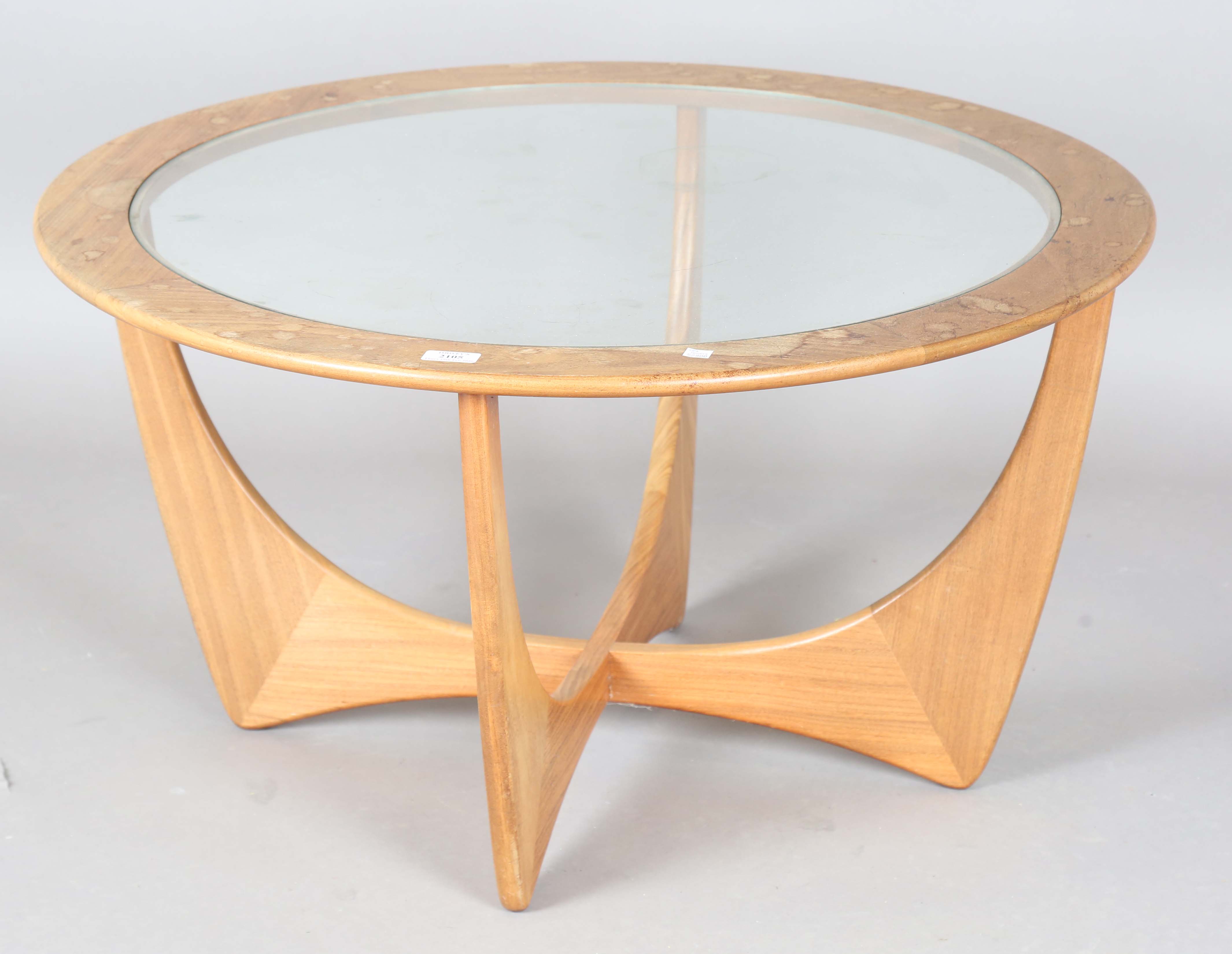 A mid-20th century G-Plan teak circular coffee table with inset glass top, height 45cm, diameter 84cm.