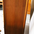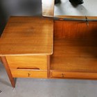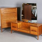 A mid-20th century walnut chest of five drawers by A. Younger, height 117cm, width 90cm, depth 49cm, together with a matching dressing table, width 150cm.