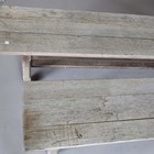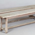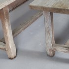 A pair of 20th century washed oak benches, on chamfered legs, height 45cm, width 200cm, depth 32cm.
