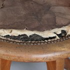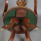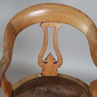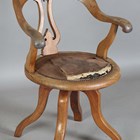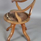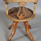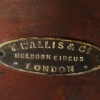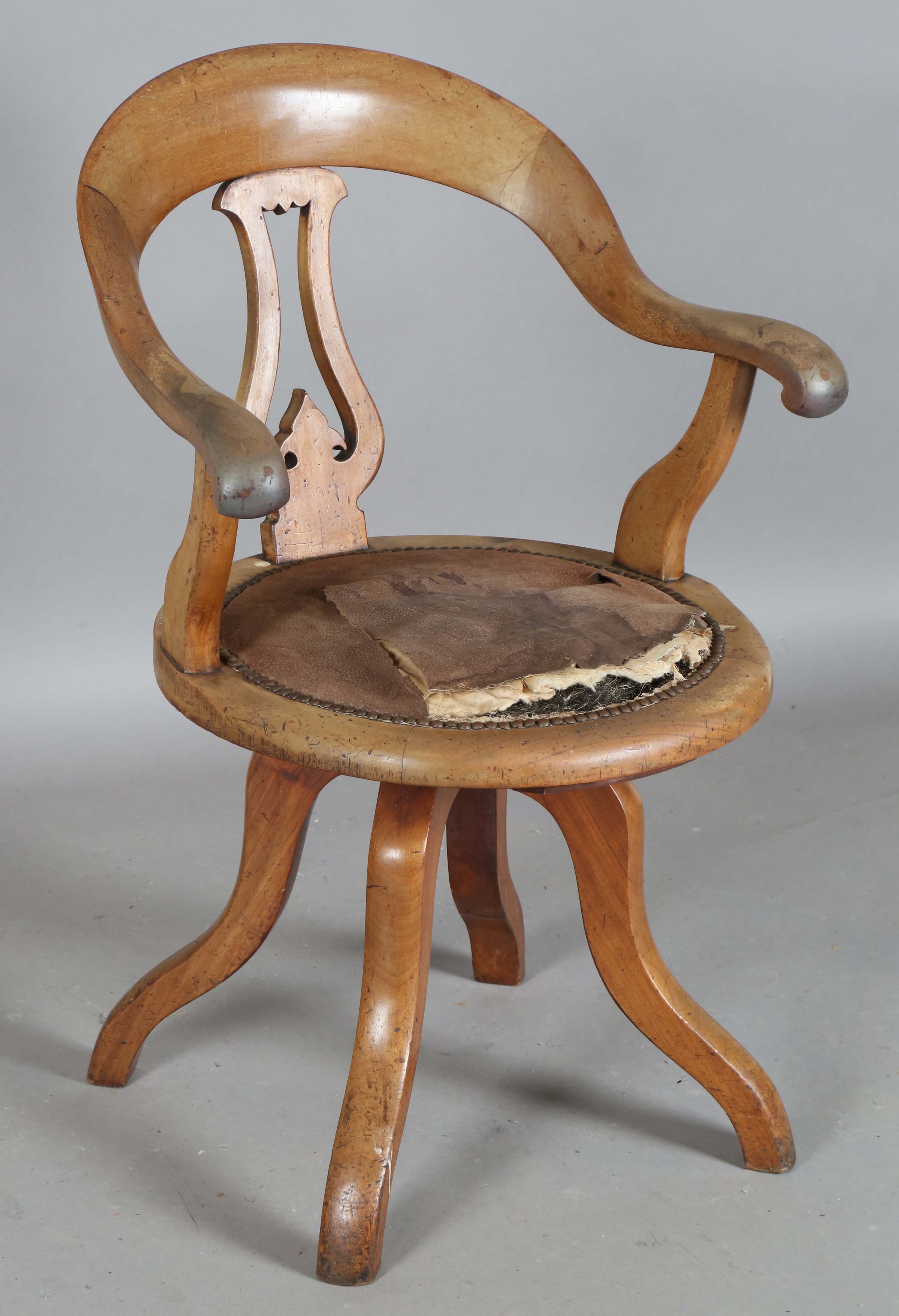 A mid-Victorian mahogany framed tub back revolving desk chair, the underside with applied gilt brass maker's label, detailed 'T. Wallis & Co... London', height 88cm, width 60cm, depth 58cm.