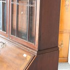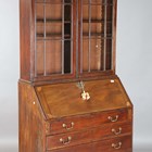 A George III mahogany bureau bookcase, the fall flap with inlaid foliate spandrels above four oak-lined drawers, height 228cm, width 105cm, depth 50cm.