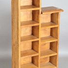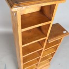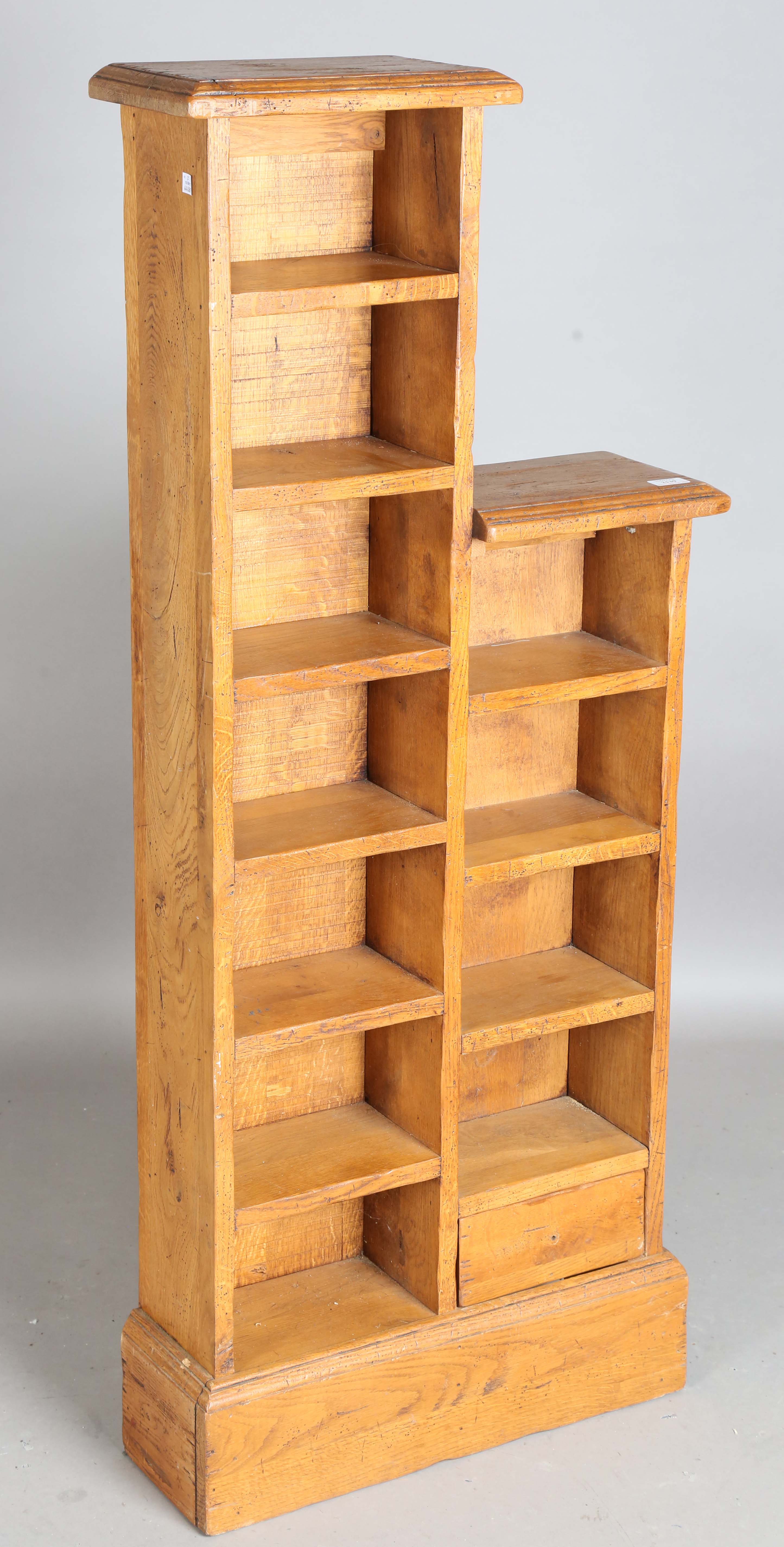 A late 20th century oak bookshelf of asymmetrical design, height 137cm, width 59cm, depth 19cm.