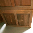 A pair of late 20th century elm bookcase cabinets, the tops with glazed panel doors above cupboards, height 211cm, width 105cm, depth 49cm.