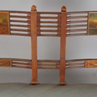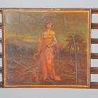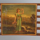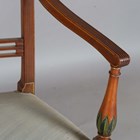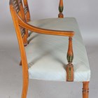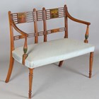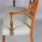 An early 20th century Neoclassical Revival satinwood and painted hall settee, the rail backs painted with figural scenes, height 86cm, width 103cm, depth 49cm.